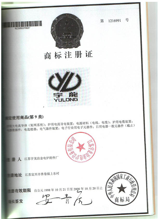 宇龙冶金商标注册证
